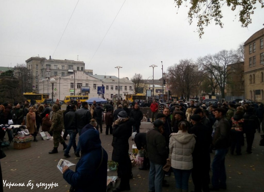 Людей на митинг собрала партия «УКРОП», которую возглавляет задержанный на днях соратник Игоря Коломойского Геннадий Корбан.