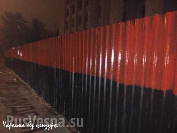 Напомним, первыми в преддверии годовщины трагедии выкрасили забор в сине-желтые цвета украинские нацисты, затем 2 ноября куликовцы закрасили забор в черный цвет.