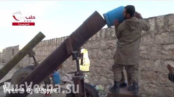 Террористы в Сирии зафиксировали на видео обстрел из огромных самодельных минометов.