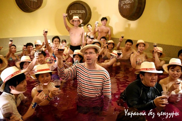 Винная ванна из "цветной" воды на курорте с горячими источниками в Хаконэ, префектура Канагава к западу от Токио