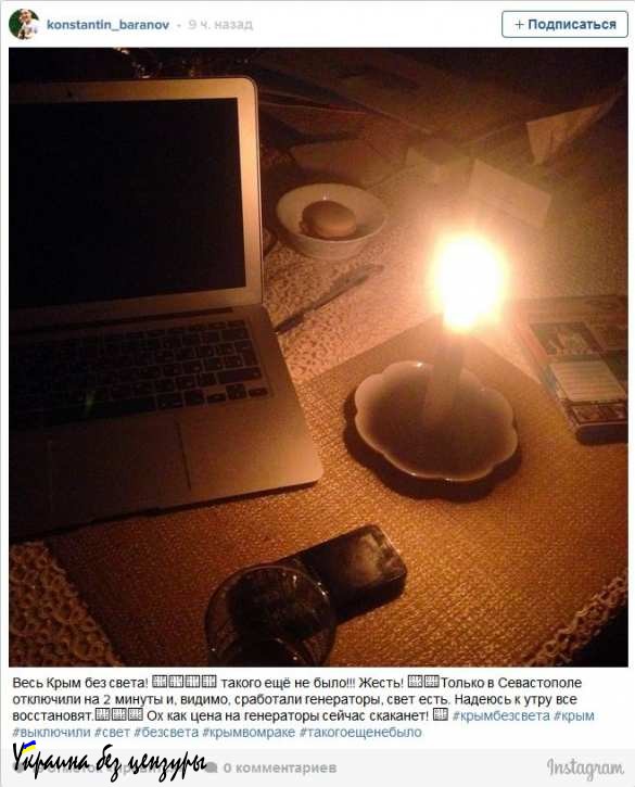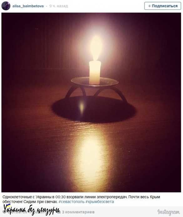Главные новости страны ua-ru.info » Новости » #Крымбезсвета: Жители полуострова делятся фотографиями проведённой при свечах ночи (ФОТО)
