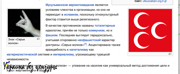 Википедия: «Является наиболее радикальным крылом MHP, придерживается идеологии пантюркизма и неофашизма. Активно участвовала в политическом насилии 1970-х годов, действовала в рамках международной антикоммунистической системы Гладио. Боевики организации обвинялись в ряде убийств и террористических актов, в том числе в покушении на Папу Римского Иоанна Павла II. С 1990-х годов переключилась на борьбу с курдским сепаратистским движением и этноконфессиональными меньшинствами».