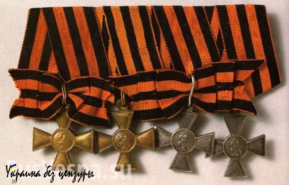 Мечта каждого воина, начиная от простого рядового и вплоть до командующих целыми армиями, от самого маленького винтика в сложной машине, защищающей отчизну от нападения врага, вплоть до ее самых гигантских рычагов и молотов, это, вернувшись домой после бранной страды, принести, как вещественное доказательство личной храбрости и воинской доблести серебряный или золотой крестик Святого Георгия на двухцветной, черной с желтым ленточке.