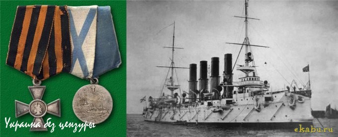 Наградная колодка нижнего чина экипажа крейсера. Справа — специально учреждённая медаль «За бой Варяга и Корейца 27 января 1904 года — г. Чемульпо».