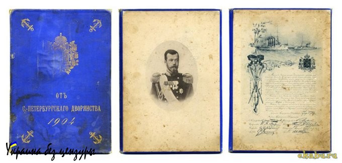Подарочный адрес членам экипажа от Дворянского собрания г. Санкт-Петербурга.