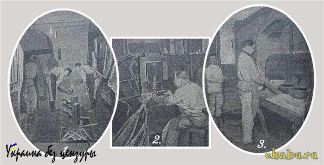 Процесс лигировки в тигле происходит в течение трех-трех с половиною часов. После этого, достаточно расплавленную и смешавшуюся массу металла выливают в особые формы, «изложницы» (снимок № 1), остыв в которых, металл получается в виде полос, длиною около восьми вершков, толщиною в квадратный дюйм и весом: серебряные полосы 20 фунтов, золотые — 35 фунтов.