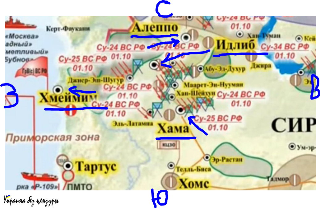 Между тем, каждому, кто хоть немного знаком с принципами составления карт, понятно, что данная новость — фейк. На указанной картинке, юго-западнее Алеппо, мы видим крупный, крупнее обычного черный кружок, обозначающий город Идлиб.