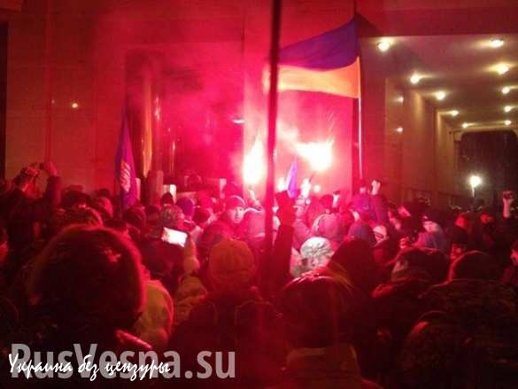 В Киеве митингующие, собравшиеся на Майдане, штурмовали офис компании донецкого олигарха Рината Ахметова, сообщают источники «Русской Весны» с места событий.