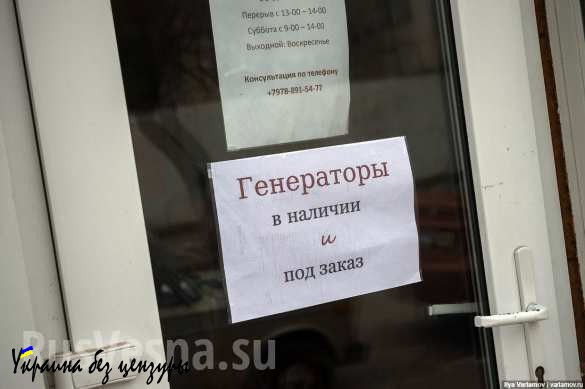 Повышенный спрос привел к росту цен на генераторы — пожалуй, это единственный товар подорожавший в Крыму за последнюю неделю. Маломощный генератор может обеспечить питание для кассы и свет для пары-тройки лампочек в торговом зале. От холодильников, где хранилась заморозка, торговцы отказываются. Макеев говорит, что они «едят» слишком много энергии — от 100 КВт в супермаркете.