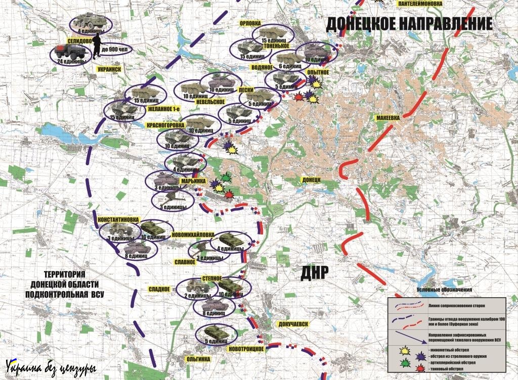 Разведка ДНР за неделю выявила у фронта 277 танков и тяжелой артиллерии киевских военных (КАРТА)