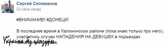 В тексте «Донецкие новости» ссылаются на Facebook дончанина Сергея Селиванова, который действительно написал про нападения на девушек, но в его словах не было ни одного упоминания про серийного насильника или убийцу, которых и называют маньяками.