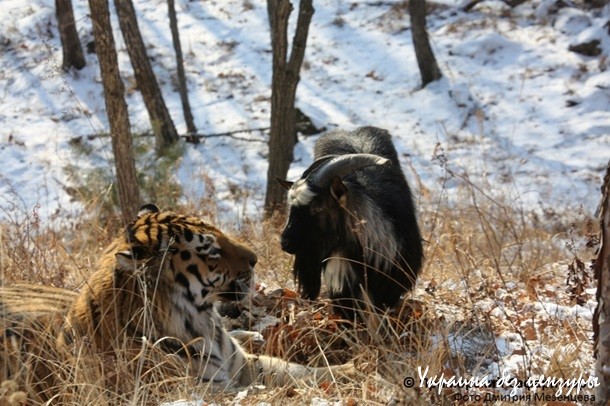 Сотрудники Приморского Сафари-парка расселили тигра Амура и козла Тимура, знаменитый своей дружбой. Козел после отселения испытывал стресс и отказался есть. Днем животных выпускают в общий вольер, а ночью расселяют