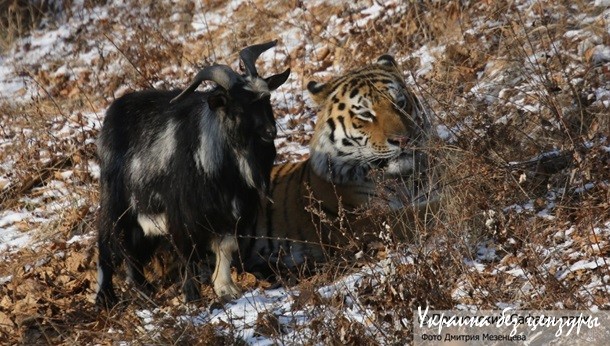 Козел так привык к тигру, что ест только после того, как увидит своего друга