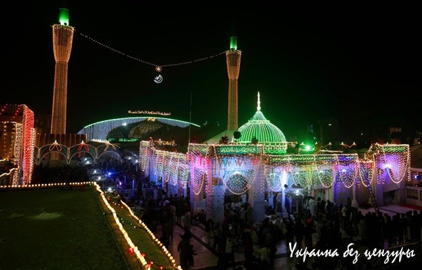 Храм мусульманского святого Хазрата Али бен Усмана аль-Haджвери во время ежегодного религиозного фестиваля в Лахоре, Пакистан