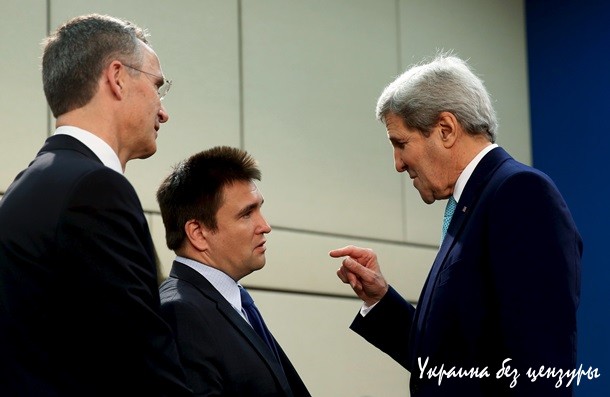 Министр иностранных дел Украины Павел Климкин встретился с госсекретарем США Джоном Керри на заседании министров НАТО в штаб-квартире Альянса в Брюсселе. Слева на фото - генсек НАТО Йенс Столтенберг