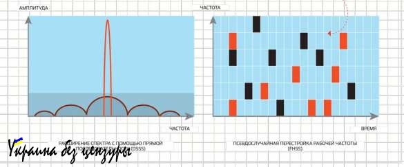 На фото: Схема работы псевдослучайной перестройки рабочей частоты (ППРЧ)