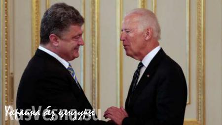 В Киеве активисты выстроились вдоль пути следования кортежа вице-президента США Джо Байдена с плакатами «Biden go home» («Байден, возвращайся домой») и «США — империя зла».