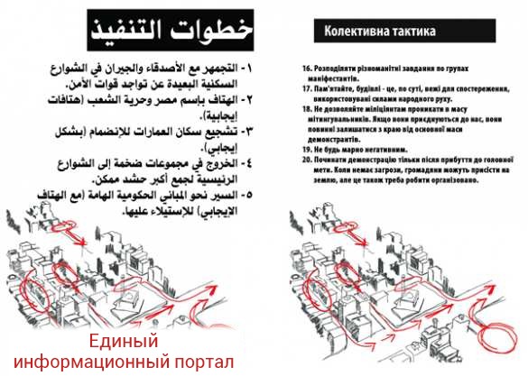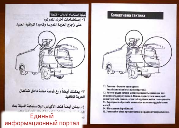 Мы сравнили листовки, которые были получены в Египте, и на украинской мове. Чудным образом, аналогичные листовки можно найти на киргизском языке, на греческом — во многих странах, где возникали проблемы. Может быть, это конечно, некая неизвестная международная организация, которая помогает, протягивает руку помощи тем, кто создает революции.