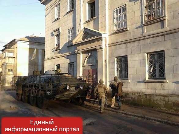 Спецназ СБУ, отряды нацгвардии и полиции окружили здание общежития по улице Красномаякской, 17-а в Мариуполе: проводится операция по изъятию оружия у одного из подразделений, воевавших на стороне киевской власти.