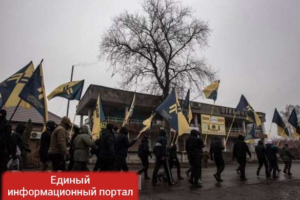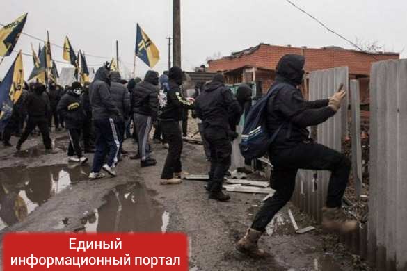 В пгт Краснокутск Харьковской области Украины боевики гражданского корпуса «Азов» забросали дома руководителей райотдела полиции камнями и коктейлями Молотова.