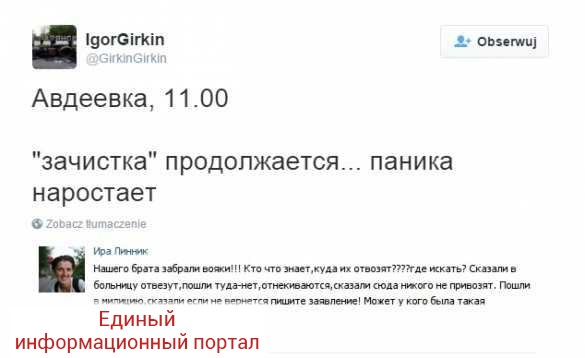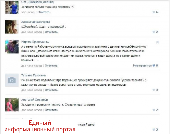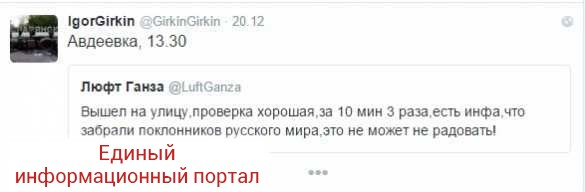 «Вышел на улицу, проверка хорошая, за 10 мин 3 раза, есть инфа, что забрали поклонников русского мира, это не может не радовать», — сообщает местный проукраинский активист в своем twitter.