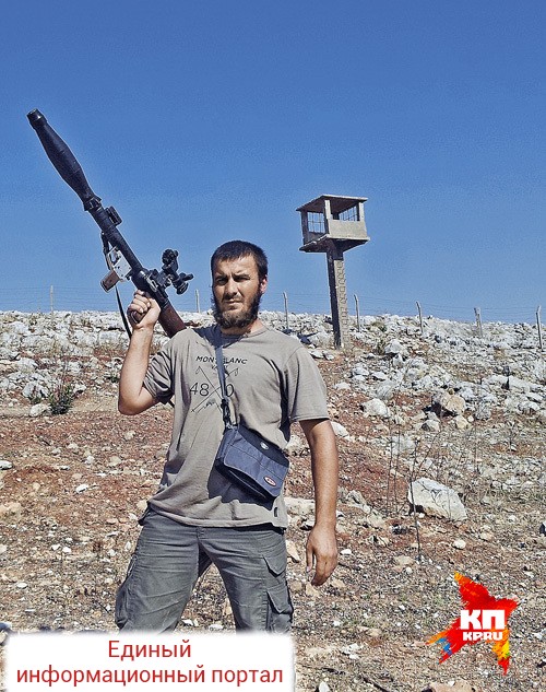 Описание фото: Лагеря подготовки располагаются рядом с турецкой границей. Российский террорист позирует перед пограничной вышкой.