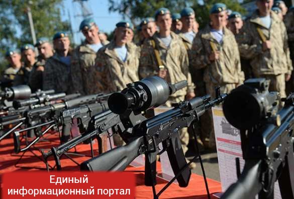 Описание фото: Демонстрация образцов стрелкового оружия на совместных учениях Коллективных сил оперативного реагирования ОДКБ «Взаимодействие-2015» в Псковской области.