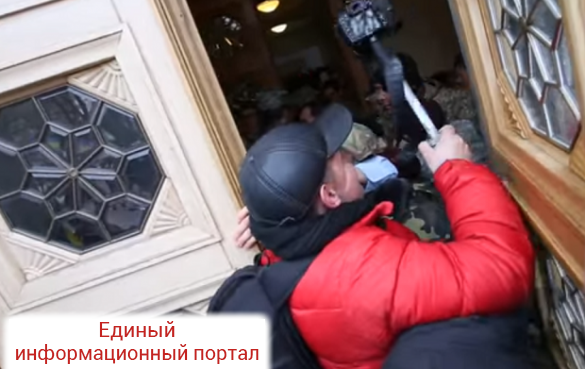 В свою очередь скандальный Парасюк взял у одного из активистов топор, как он отметил — «для своей безопасности», и отправился назад в админздание.
