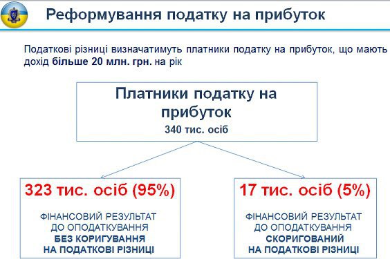 Для налога на прибыль запланирована сокращение налоговых разниц до 3 (амортизация, резервы, финансовые операции). Но их будут применять лишь плательщики с доходом более 20 млн гривен в год.