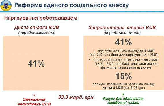 Предлагается реформа и единого социального взноса. Ставка ЕСВ будет состоять из двух частей. Для суммы до 2 минимальных зарплат будет применяться 41% ЕСВ, а для всего, что выше 2 МЗП – 15%. По расчетам правительства, это позволит сократить нагрузку на зарплату на 20-50%. Однако, опять-таки, для большинства наемных сотрудников ничего не изменится, так как официальная часть редко превышает 2 МЗП. А стимулов у работодателей обнажать реальный размер оплаты труда, увы, пока что нет.
