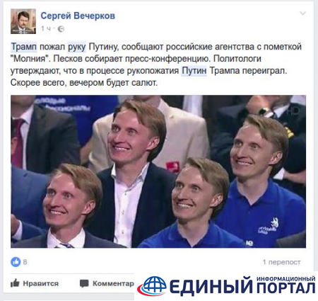 Пользователи отметили, что российские СМИ подавали новость о рукопожатии лидеров как победу России.