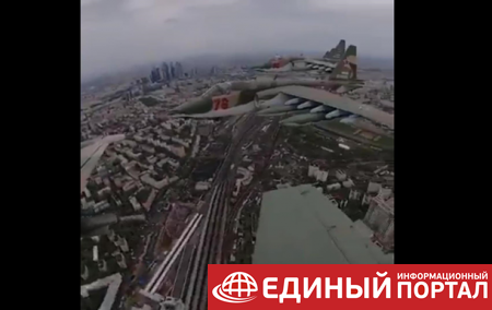 Видео было сделано во время закрытия воздушного парада. Группа Су-25 окрашивала небо в цвета государственного флага РФ.