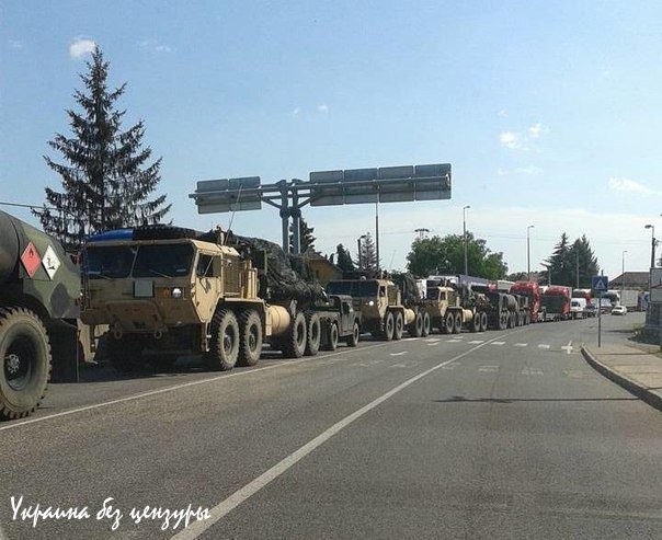Венгерский сайт Karpathir, связанный с венгерской общиной в Закарпатье, опубликовал сегодня фото проезжающего пограничную заставу конвоя. Сайт пишет: "Один из наших читателей послал в Карпатский вестник фотографии, приведённые ниже. Изображения были сделаны в пограничном пункте Захонь 09.06.2015 в полдень на венгерской стороне." На фото хорошо видна военная тентированная техника, несколько фур, броневики Хамви, бензовозы. С какой целью и куда направился конвой – неизвестно. Одна из версий — на похожих тягачах перевозятся системы залпового огня европейского производства. Напомним, неоднократно поступала информация о том, что страны Варшавского договора и бывшего соцлагеря могут поставлять советское оружие Украине, оставшееся на их территории."