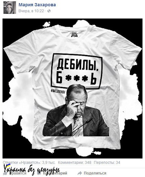 Директора Департамента информации и печати МИД РФ, кандидат исторических наук Мария Захарова, после получения Россией ноты протеста от МИД Украины, по поводу посещения Президентом России Владимиром Путиным Крыма в Facebook не написала ни одного слова, однако многие пользователи отмечают, что она выразила мнение многих россиян, разместив понравившуюся ей фотографию.