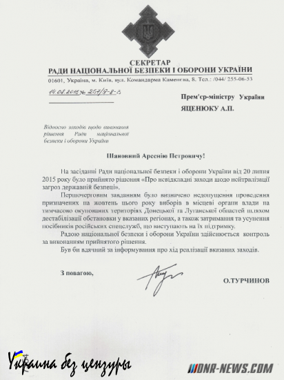Главные новости страны ua-ru.info » Новости » Политика » СНБО готовит срыв выборов в Донбассе. Киберберкут. (фото документа)
