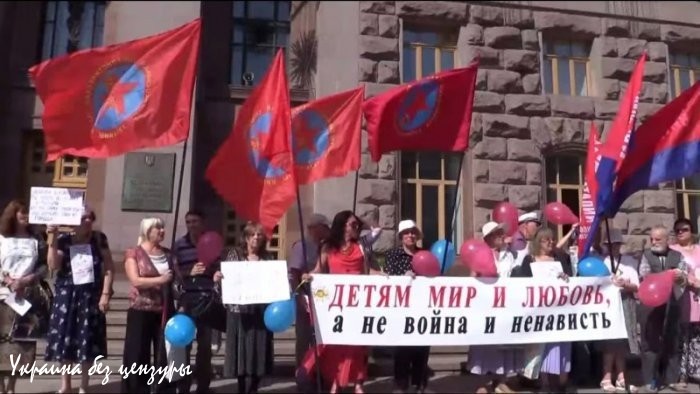 Поглощенная недавними кровавыми событиями возле Рады пресса оставила практически незамеченной ещё одну акцию в центре Киева. Хотя для сегодняшнего Киева это событие куда более из ряда вон выходящее, чем погромы и убийства, которые уже стали привычными и для страны, и для ее столицы.Под стенами местной мэрии на Крещатике прошла антивоенная акция сторонников Прогрессивной социалистической партии Украины, возглавляемой Натальей Витренко, Рабочей партии Украины и общественной организации "Женщины за мир".Прогрессивная социалистическая партия Украины стала инициатором всеукраинской акции "Детям мир и любовь, а не война и ненависть!", выражая этим протест против втягивания детей, школьников в жесткую политизацию, пропаганду войны и ненависти. 31 августа, в канун праздника Дня знаний, начала учебного года, эта акция, пропагандирующая добро, любовь и мир, стала альтернативой уготовленному властью Украины сценарию проведения первого урока во всех школах как урока воинственности и ненависти. Международное право (в частности, и ратифицированная Украиной Конвенция о правах ребёнка) категорически запрещает втягивать в политику детей. Тем более, в доверчивое, несформированное сознание ребёнка безальтернативно вбивать идеи ксенофобии, национальной нетерпимости и оправдания жестокости.Инициативу прогрессистов поддержали единомышленники из других партий и общественных организаций.Так, в Киеве к зданию мерии вместе с членами ПСПУ вышли члены Рабочей партии Украины и общественной организации "Женщины за мир" во главе с народным депутатом Украины Еленой Мазур.Акция "Детям мир и любовь, а не война и ненависть!" в этот день прошла в Чернигове, Черновцах и Днепропетровске, в Винницкой (Виннице и Жмеринке), Сумской (Ромны), Кировоградской (Светловодск и Знаменка) и Харьковской (Харьков и Изюм) областях.При проведении акции её участники использовали общепризнанные символы мира: голуби, надувные шары, цветы.Суть акции, её дух, её энергетика были направлены на установление мира на Украине и выполнение Минских соглашений.Ее участники потребовали от властей прекратить войну на Донбассе, придерживаться Минских договоренностей и остановить пропаганду войны."Вот уже 25 лет власть в Украине ведет холодную войну против своего народа, и, в первую очередь, против наших детей. И два года уже идет война горячая, ее тотальная пропаганда.К сожалению, подавляющее большинство киевлян сегодня не осознают, что происходит на Донбассе, что там цинично истребляют детей. Власть должна прекратить эту безумную войну", - заявили участники акции.Акция состоялась накануне начала учебного года.Крайне примечательно, что мероприятие прошло без эксцессов, несмотря на то, что подобные акции рискуют быть разгромленными в сегодняшней украинской столице. Скорее всего, радикальные группировки были слишком заняты вчерашними событиями у стен Верховной Рады. В любом случае, люди, которые вышли с подобными лозунгами в центр столицы бандеровской Украины, да ещё и с красными флагами, являют собой настоящий пример неподдельного мужества.Очень хочется надеяться, что они не останутся неуслышанными. Нет, не властью, конечно. Война для нее - живительный источник, за счет которого она питается и за счет которого существует. Но, возможно, эти смелые люди вдохновят своим поступком еди