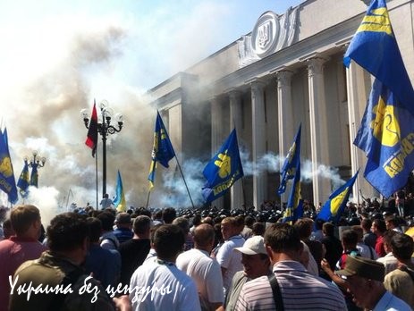 Стычки под Верховной РадойОни стали реакцией на попытку президента протащить изменения в Конституцию касательно децентрализации. Митинг 31 августа закончился столкновениями с милицией и броском гранаты в правоохранителей. Четыре нацгвардейца погибли, почти полторы сотни человек пострадали.В интервью британской газете Independent Порошенко заявил, что события у Рады представляют собой сдвиг в «российской тактике», направленный на дестабилизацию ситуации в стране. Видимо, кромешный ужас, происходящий в Украине с ее войной и развалившейся экономикой, Порошенко считает вполне стабильным.В итоге Аваков обвинил партию «Свобода». Советник министра внутренних дел Украины Зорян Шкиряк на следующий день заявил о задержании 18 активистов, из которых сразу отпустили 13 человек.