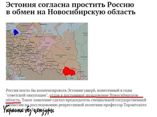 "Мы представили отчет об ущербе, нанесенном Эстонии как за годы советской власти, так и вследствие оккупации Германией. Но так как период немецкой оккупации был сравнительно недолгим, то основное внимание уделено советскому периоду", - сообщил Велло Сало, профессор Торонтского университета, где, судя по всему, и кормится...Вообще-то странно - ведь, в годы войны "профессор" воевал против антигитлеровской коалиции, в которой состояла Канада, а сегодня Канада кормит того, кто стрелял в солдат союзников?! Возможно, кого-то и убил из канадцев...По данным расследования комиссии, возглавляемой этим "профессором", "в ходе репрессий Эстония потеряла 180 тысяч человек, что составляет 18% от общего числа населения", а "пребывание Советской армии нанесло природе страны катастрофический ущерб". Гитлеровские расстрелы эстонских граждан для "профессора", которому платит Университет Торонто, не в счёт? А инфраструктура, созданная для эстонцев на советские деньги, за счет обломков которой они по сей день существуют - это "ущерб"?Более того, у господина Сало есть предложение о том, как Россия должна "рассчитаться с Эстонией за грехи СССР": "Пусть, например, в наше пользование отдадут Новосибирскую область, на территории которой в течение определенного количества лет мы могли бы делать лесозаготовки", - сообщил "профессор" газете "Eesti Paevaleht".К Германии у этого "профессора" территориальных претензий, насколько известно, нет. Он же понимает, что немцы церемонятся с ним за такие территориальные и словесные экзерсисы не будут - дадут по рукам (в лучшем случае) так, что и не вспомнит про свои "хотелки" против Германии.И "профессор" это знает, поэтому он "пошел на Восток" - против России.