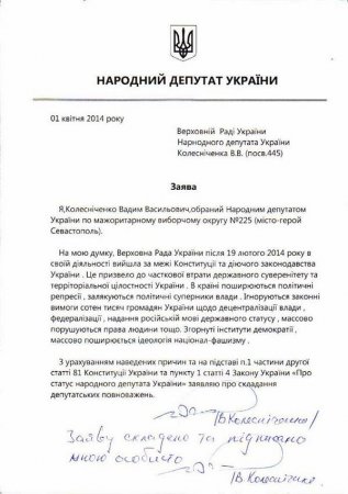 Нардеп регионал Колесниченко сложил мандат