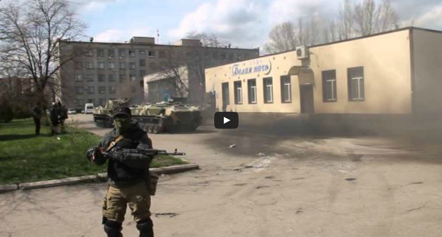 Зеленые человечки в Славянске раздали населению автоматы и гранатометы