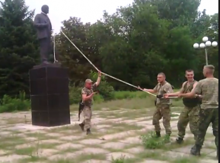 На Донетчине «упал» еще один Ленин. ВИДЕО