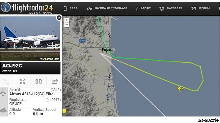 Самолет Януковича приземлился в Фуджайра, ОАЭ около 10 минут назад. Информация получена из